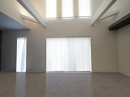日中は心地よい自然光、夜は柔らかな照明の光に包まれる、ゆとりある広さのリビングです。※CG加工済