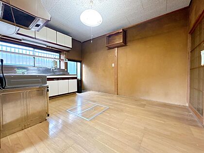 【内外装リフォーム予定】1階ダイニングの写真です。フローリング重ね張り、クロス張替えを行います。