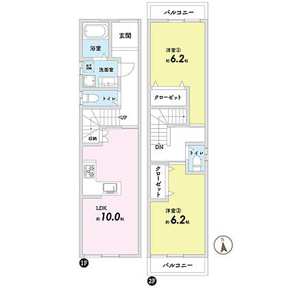 2LDK、主要採光面南、建物面積60.74m2、2023年6月築。