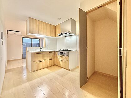 キッチンはL型システムキッチンとなっています!作業スペースが広めでお料理も捗りそうです♪