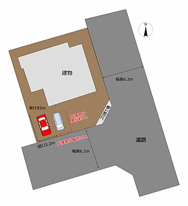 •  【区画図】駐車2台可能に変更いたします。前面道路は約6.2mありますので、運転が苦手な方でも駐車やすれ違いがしやすいですね。