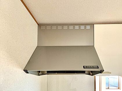 【スリムレンジフード】 スリムなレンジフードは凹凸がほとんどないため油がつきにくくお手入れしやすい形状。
