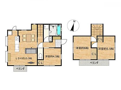 【間取図】リフォーム後間取図です。3LDKの2階建て住宅です。