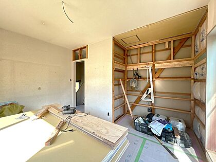 【リフォーム中 10月12日撮影】東側洋室の別角度写真です。床はフローリング仕上げ、壁・天井はクロス張替えを行う予定です。