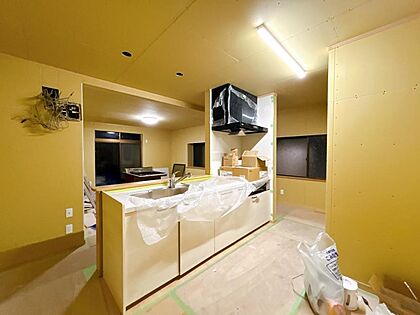 【リフォーム中】新品交換予定のキッチンは幅約255cmと広々しています。