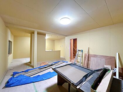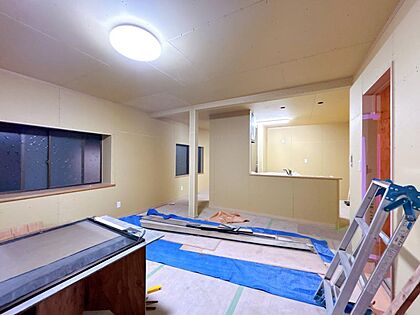 【リフォーム中】LDKにリフォームする箇所の写真です。フローリング張り、壁天井クロス仕上げ、照明新品交換等を行います。