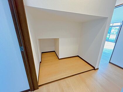 【リフォーム済】階段下のスペースは有効活用できるようリフォームしております。カーテン等で仕切って収納にするのも良し、趣味の空間にするのも良し、ご自由にお使いください。