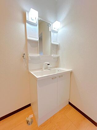 【リフォーム済】洗面化粧台は新品に交換しました。コンセントもついており、機能性の高いタイプとなっております。