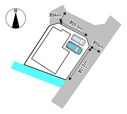【区画図】2方向道路に面しております。南側は建物がございませんので、日当たりは問題ございません。