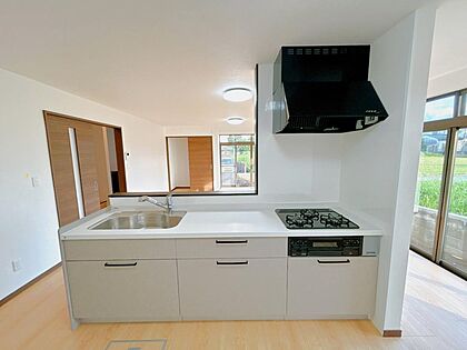 【リフォーム済】キッチンはハウステック製の新品に交換しました。嬉しい多収納タイプ。天板は熱や傷にも強い人工大理石仕様なので、毎日のお手入れが簡単です。