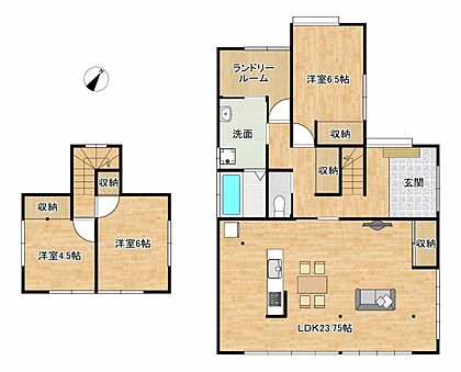 【リフォーム済】2階4.5帖洋室はフローリングやクロスの張替え等を行いました。各部屋に収納がございますので、お部屋を広くお使いいただけます。