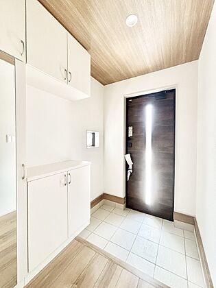•  ガラススリットの入った玄関ドアが室内に光を届けてくれます