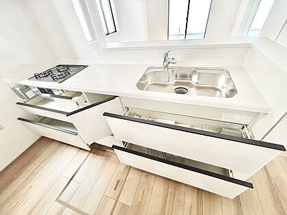 •  広々とした使い勝手の良いキッチンで日々のお料理も楽しくなりそう
