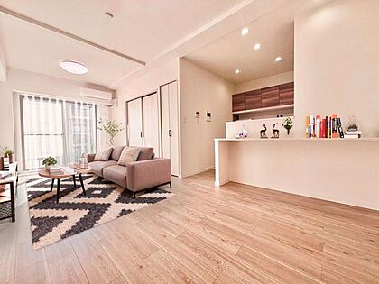 【配置してある家具はCGによるイメージです】ソファーやダイニングテーブルを置いてもゆとりのある広々リビングです。ご家族みなさんで寛げる空間をぜひ現地で体感してみてください。