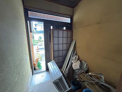 【リフォーム中】玄関内観です。タイルは張替え、シューズボックスはコの字型の新品に交換します。