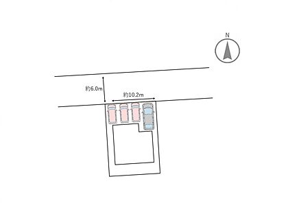 【区画図】駐車場拡張後は軽自動車3台分、普通自動車1台分の駐車場になります。