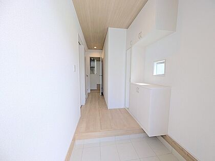 誰も住んだことのない家の玄関スペース。あたらしい木のにおいを感じていただけると思います。