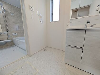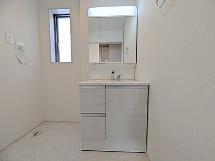収納力と機能性に優れた、お手入れラクラク洗面化粧台。
