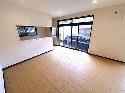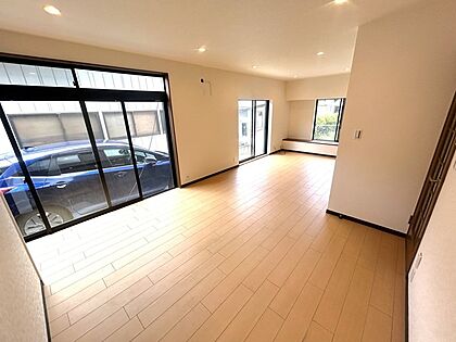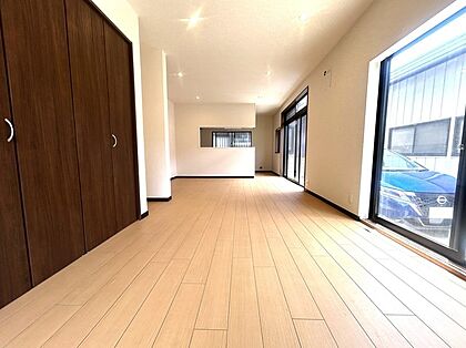 大画面TVの配置も可能なワイドリビングは約19帖。