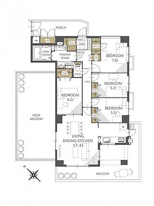 L字型バルコニーでお洗濯ものもスッキリ乾きそうですね