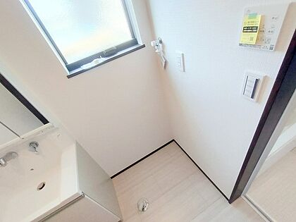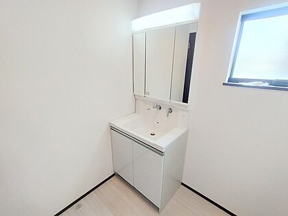 収納豊富な三面鏡付洗面化粧台。水回りのあれこれがキレイに収まりそうですね。