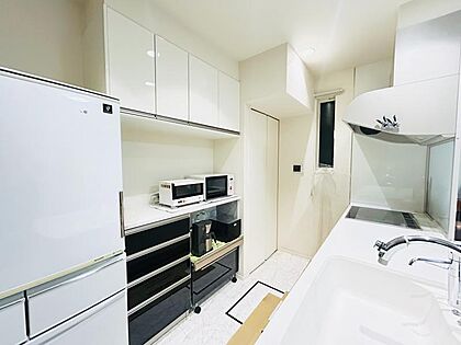 キッチン自体にも収納がありますが、カップボードがあるので収納力はバッチリ!プラスアルファの収納があると嬉しいですね♪