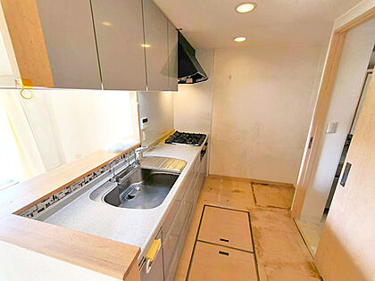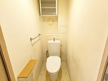 トイレットペーパー他、収納に役立つ上部吊戸棚を設置しています。