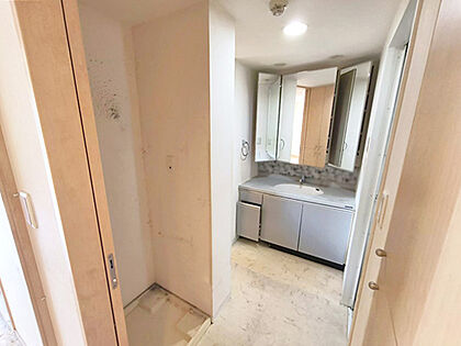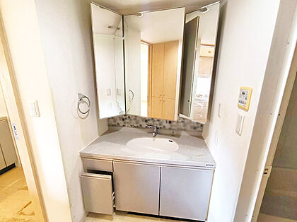 三面鏡裏収納を採用。化粧品や小物をスッキリ収納できます。