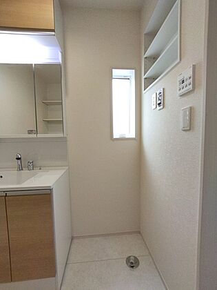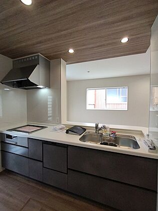 食洗器・床下収納収・勝手口つきの便利なシステムキッチン。水回りが集約された家事導線に配慮した構造です