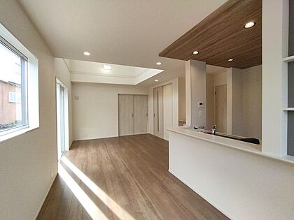 一部吹き抜け構造の解放感あふれるLDK!約17.25畳の広さに加え、約4.5畳の和室が隣接しています