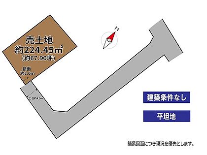 | 土地面積/坪(坪単価) | 224.45m2(登記簿)/68.02坪(12.30万円) | 接道 | − |