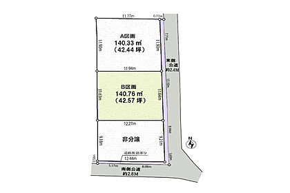 | 土地面積/坪(坪単価) | 140.76m2(登記簿)/42.65坪(93.30万円) | 代表的な接道 | 一方 公道 東 2.4m ※詳細は備考欄をご確認ください |