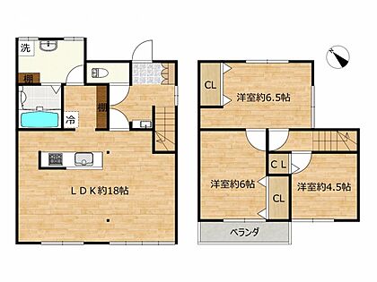 【間取り図】3LDKに間取り変更します。約18帖のLDKで使いやすい間取りです。