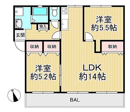 | 間取り | 2LDK | 専有面積 | 55.63m2(内法) |
