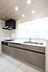 キッチンは使いやすいシステムキッチンです。浄水器一体型の水栓も標準装備しています。