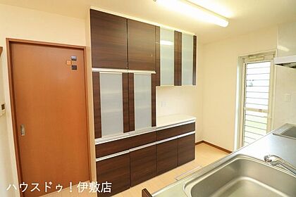 【カップボード】キッチンには雰囲気にあうカップボード付きです
