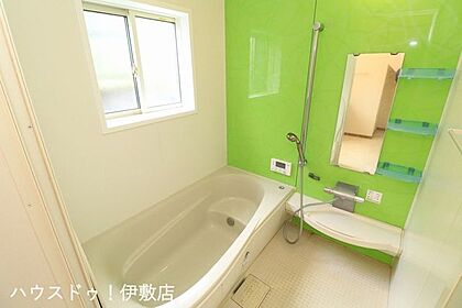 【浴室】大型の浴槽に浸かって日頃の疲れを癒して頂く事が出来ますね