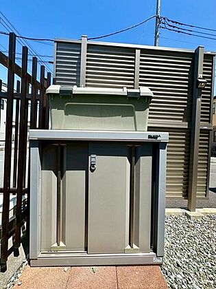 しっかりサイズの屋外物置付きで、しまいたいがスッキリ解決。季節家電やアウトドア用品はもちろん、タイヤや工具、使わない家具まで収納でき、室内空間を広く快適に!