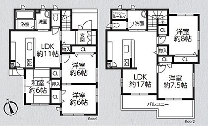 LDK+隣接和室、開放すれば計約17帖。おもてなしスペースにもどうぞ。