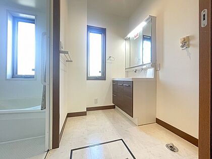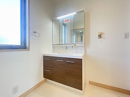 たっぷりの収納を設けたシャワー付洗面台で快適な暮らし。