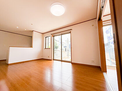 家族が自然と集まる広々としたリビング。大きな窓から陽の光が降り注ぎ、開放感と温もりが広がる空間です。