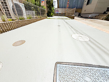 駐車スペース2台のゆとりある広さ。交通量も少なく、マイペースに駐車できます。