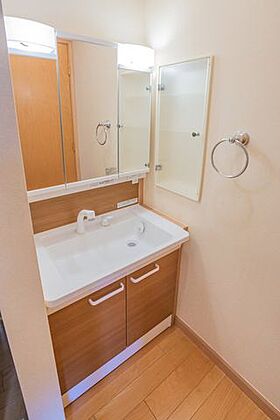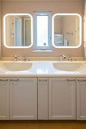 嬉しいダブルボウルの洗面台♪忙しい時間帯でも快適に支度ができちゃいます!
