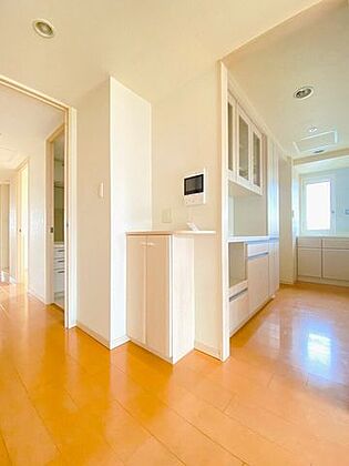 リビング入ってすぐのニッチにはモデムや電話機などが置けます。モニタ付インタフォンも♪