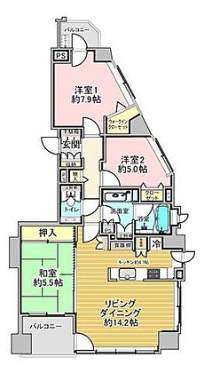 3LDK専有面積 80.02m2採光や風通しに優れたセンターイン型の間取りで、明るく快適な新生活