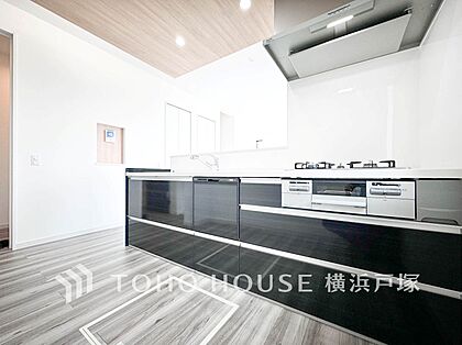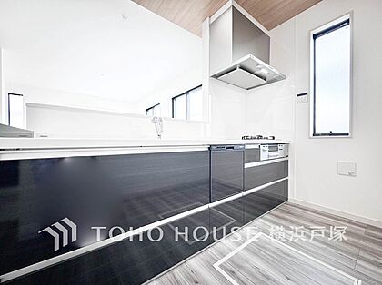 【Kitchen】内装の主役でもあり、日常活躍する重要な水回りでもあるからこそ機能性・デザイン性に力を入れております。お手入れのしやすいシステムキッチンを採用しております。