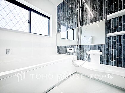 【Powder room】お家の中でも特にプライベートスペースとなる洗面所は、洗濯場所と浴室を同じ空間でまとめております。