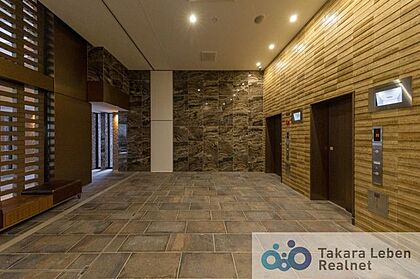 エントランスホール。デザインにこだわり、高級感のあるスタイリッシュな空間。使うときの感触やグレード感など、細部にいたるまでこだわりのある仕上がりです。