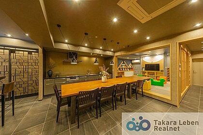共用部のパーティールーム。ご家族やご友人との時間を気兼ねなくお過ごしいただけるように、優美且つゆったりとした空間となっております。お料理教室やお誕生日会など、様々なシーンでお楽しみいただけます。