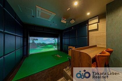 共用部のゴルフシミュレーションルーム。運動不足解消や日々のリフレッシュとしては勿論、会社の方とゴルフに行く前の練習など幅広く活用できます。